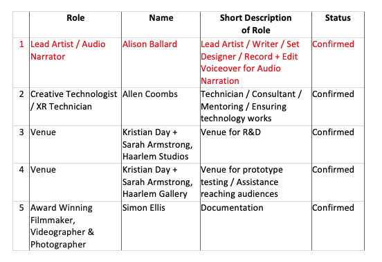 Audiences will be surveyed, to find out whether they do, indeed, find the experience immersive, whether it feels inclusive to them, and whether themes within the work are successfully conveyed. I will gather thoughts on onboarding, accessibility and inclusion, and invite suggestions for ways future iterations might be improved.